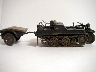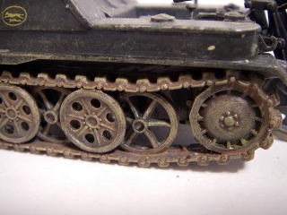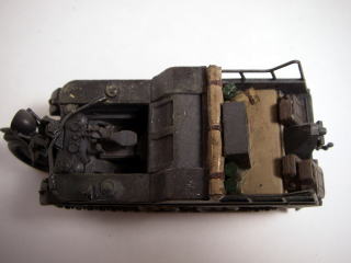 ーンをドライブラシして粉状のおうど色のパステルを少量のせました。車体はデザインナイフで傷をつけまし