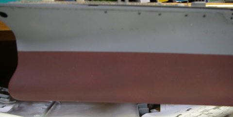 あとでパテを盛りますので、そのことも考えて削ります。